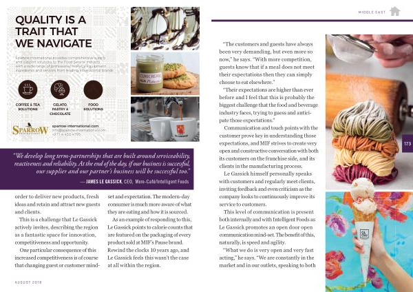 This level of communication is present both internally and with Intelligent Foods as Le Gassick promotes an open door open communication mind-set . The benefit of this , naturally , is speed and agility . “ What we do is very open and very fast acting ,” he says . “ We are constantly in the market and in our outlets , speaking to both