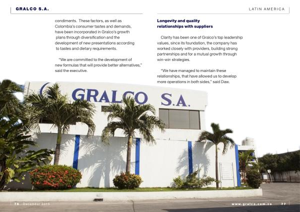 GRALCO S . A . condiments . These factors , as well as Colombia ’ s consumer tastes and demands , have been incorporated in Gralco ’ s growth plans through diversification and the development of new presentations according to tastes and dietary requirements .