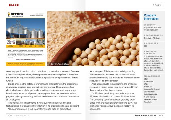 MANAGEMENT CEO : Arlindo Baldo CFO : Ernesto toni Commercial Director : Leandro Gheno Industrial Director : Ricardo Moraes Associate Director : Paulo Baldo