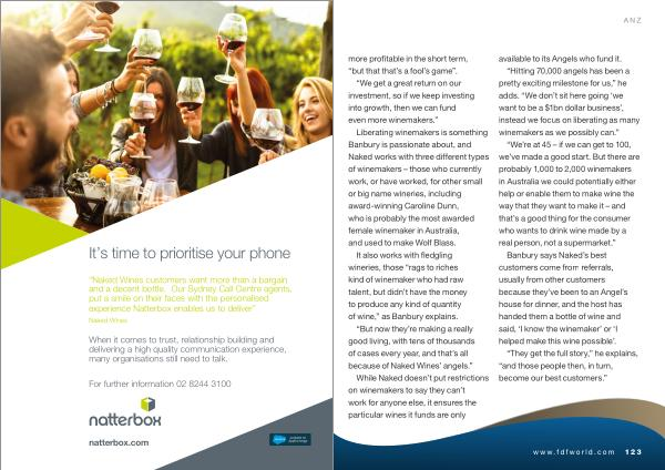 “ We ’ re at 45 – if we can get to 100 , we ’ ve made a good start . But there are probably 1,000 to 2,000 winemakers in Australia we could potentially either help or enable them to make wine the way that they want to make it – and that ’ s a good thing for the consumer who wants to drink wine made by a real person , not a supermarket .” Banbury says Naked ’ s best customers come from referrals , usually from other customers because they ’ ve been to an Angel ’ s house for dinner , and the host has handed them a bottle of wine and said , ‘ I know the winemaker ’ or ‘ I helped make this wine possible ’.