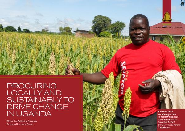 A farmer in his sorghum garden in eastern Uganda donning a senator branded T-shirt . Senator is a sorghum based beer