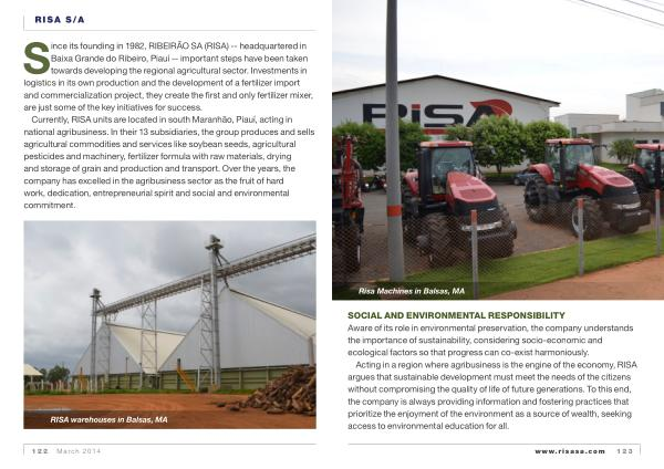 Acting in a region where agribusiness is the engine of the economy , RISA argues that sustainable development must meet the needs of the citizens without compromising the quality of life of future generations . To this end , the company is always providing information and fostering practices that prioritize the enjoyment of the environment as a source of wealth , seeking access to environmental education for all . www . risasa . com 123