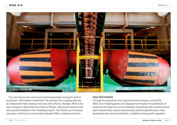 The unit ensures the correct and safe transportation during the shift of production . With a fleet of more than 100 vehicles , the company also has an independent fleet , totaling more than 300 vehicles . Besides , RISA is the only company in Brazil that has a fleet of Tritrens , featuring 50 vehicles that allow greater flexibility in the marketing of grain . The Tritrens , an Innovation company , is the fruit of a partnership between RISA , Librelato and Volvo .