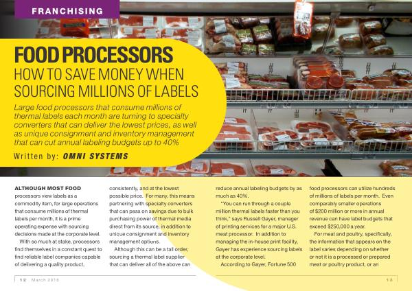 “ You can run through a couple million thermal labels faster than you think ,” says Russell Gayer , manager of printing services for a major U . S . meat processor . In addition to managing the in-house print facility , Gayer has experience sourcing labels at the corporate level .