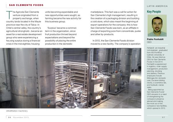 marketplace . This fact was a call for action for San Clemente ’ s high management , resulting in the creation of a packaging division and building a cold store , which also meant the beginning of export operations for the company ; this is how San Clemente Foods was born , as an affiliate in charge of exporting juice from concentrate , purée and other by-products .
