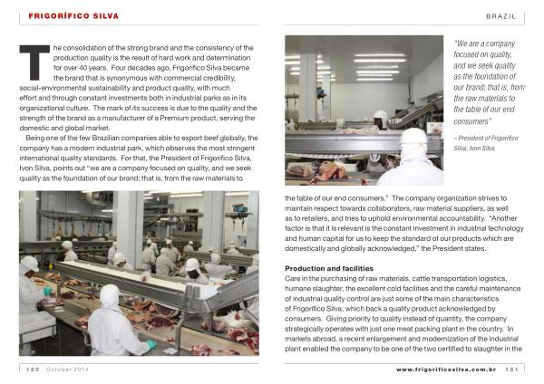 T he consolidation of the strong brand and the consistency of the production quality is the result of hard work and determination for over 40 years . Four decades ago , Frigorífico Silva became the brand that is synonymous with commercial credibility , social-environmental sustainability and product quality , with much effort and through constant investments both in industrial parks as in its organizational culture . The mark of its success is due to the quality and the strength of the brand as a manufacturer of a Premium product , serving the domestic and global market .