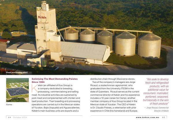 Kekén ( an affiliated of Kuo Group ) is a company dedicated to breeding , processing , commercializing and selling meat . Its industrial activities are sustained by pork meat and complemented with chicken and beef production . Their breeding and processing operations are carried out in the Mexican states of Yucatan , Bajio ( Irapuato ) and Aguascalientes . Kekén ’ s main business units are exports and a