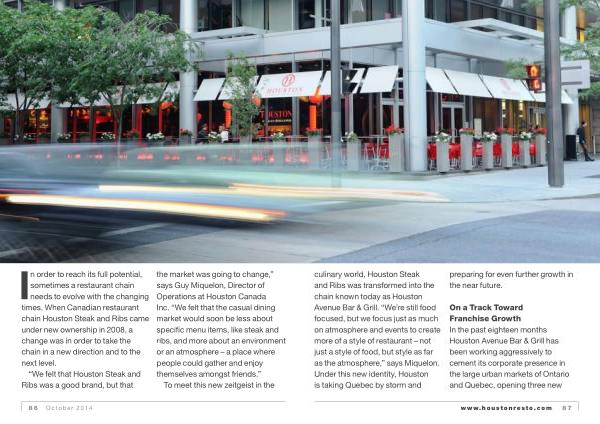 “ We felt that Houston Steak and Ribs was a good brand , but that the market was going to change ,” says Guy Miquelon , Director of Operations at Houston Canada Inc . “ We felt that the casual dining market would soon be less about specific menu items , like steak and ribs , and more about an environment or an atmosphere – a place where people could gather and enjoy themselves amongst friends .”
