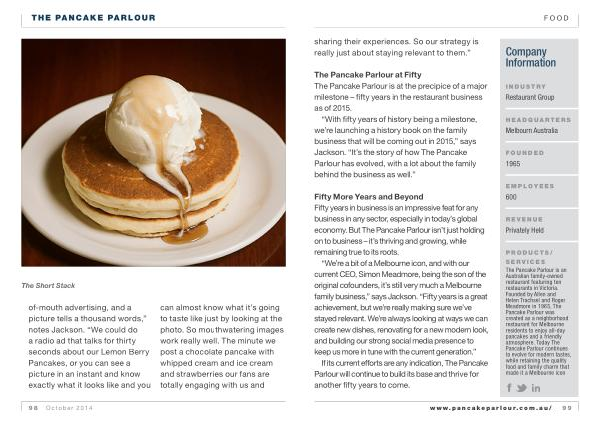 “ With fifty years of history being a milestone , we ’ re launching a history book on the family business that will be coming out in 2015 ,” says Jackson . “ It ’ s the story of how The Pancake Parlour has evolved , with a lot about the family behind the business as well .”